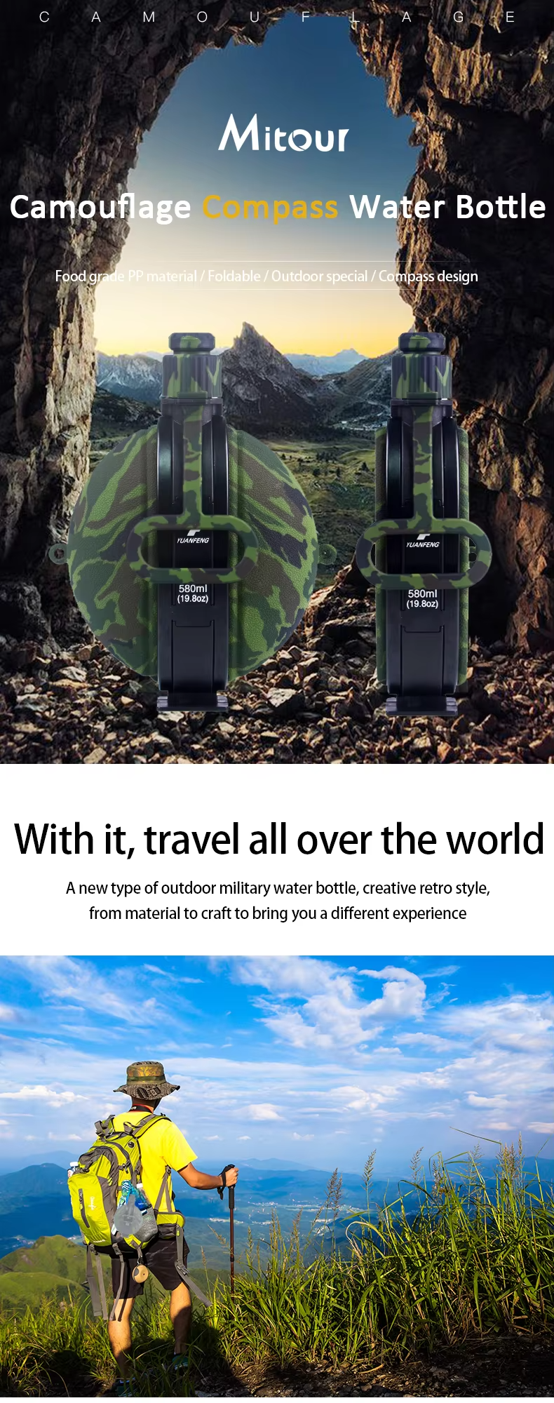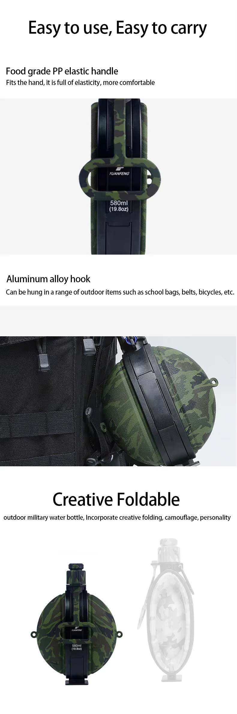 Collapsible bottle capacity: 580ml/20oz